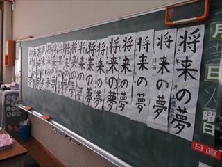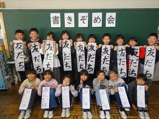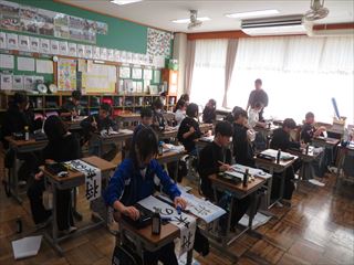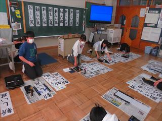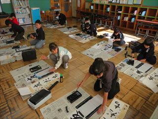 1月13日、2校時に校内書初め大会を実施しました。集中した雰囲気の中、子どもたちは心を落ち着かせ、丁寧に筆を走らせていました。一生懸命取り組む姿が、新年のよいスタートを感じさせてくれました。