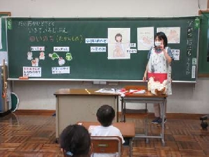 今日の1年生の道徳は、養護教諭の先生とともに、生命の尊さについて考えました。