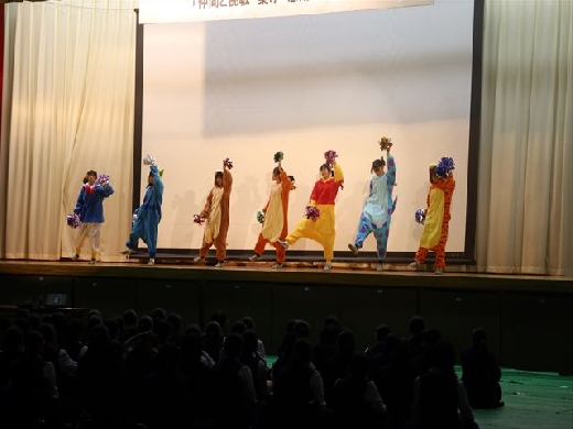 また午後の部は有志発表が行われました。普段まわりに見せることができない特技などを披露してくれました。ギターの演奏、ダンス、寸劇など多種多様な発表に観客の生徒たちも大喜びでした。