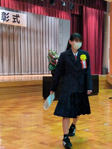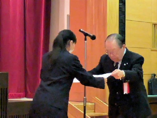 11/17(月)に古河市のとねミドリ館で中学生の税についての作文の表彰式が行われ、本校3年小谷野日希さんが「青色申告会連合会会長賞」を受賞し、表彰されました。古河税務署管内の他の受賞者とともに立派な態度で表彰を受けることができました。