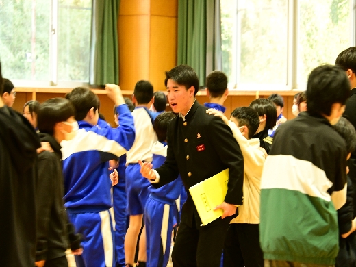 生徒会を中心とした歓迎の部では、合唱コンクールの3年の部で金賞を獲得した3年6組の合唱が行われました。