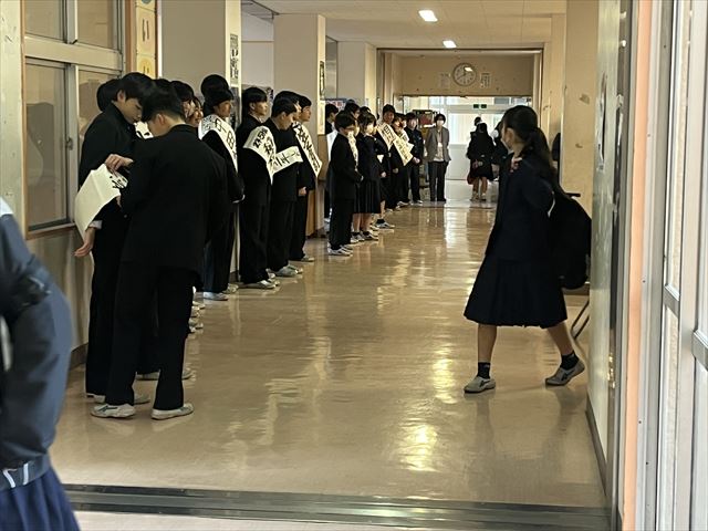 12/8(月)の朝から生徒用昇降口において今週末に行われる生徒会選挙の活動が始まりました。今年は多くの立候補者が出てきたため、活気ある選挙活動が繰り広げられておりました。