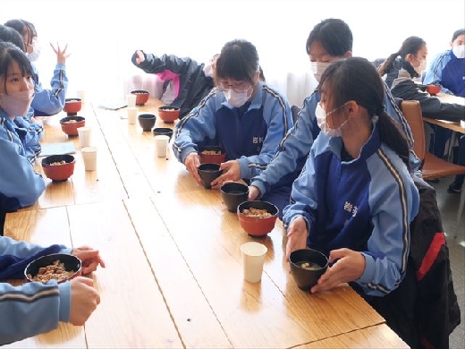 昼食は豚丼です。みんなモリモリ食べているそうです。
