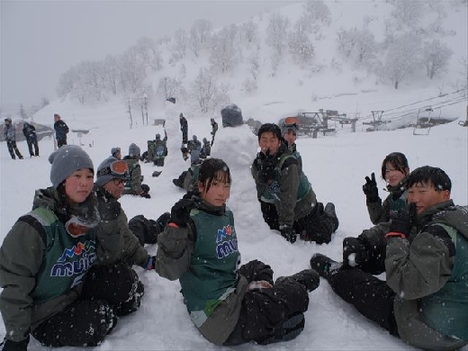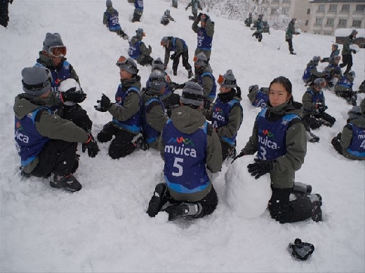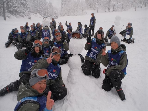 14時30分に講習3が終わり、ホテル前のゲレンデで雪上レクを行いました。