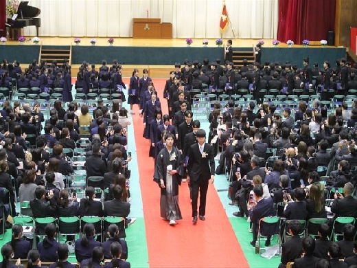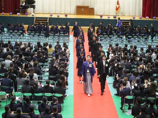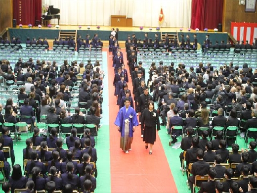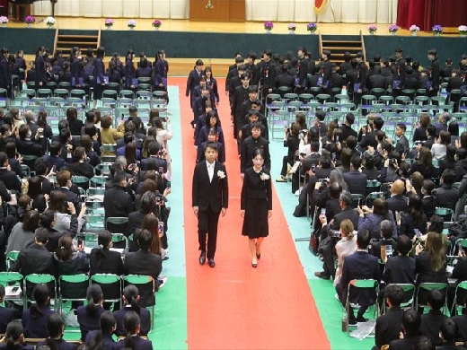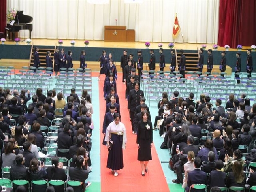 一歩一歩、かみしめるように入場する卒業生たちの姿。その表情には、数年間の学びを終えた達成感と、これから始まる新しい生活への希望が満ちあふれていました。