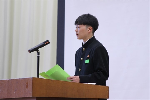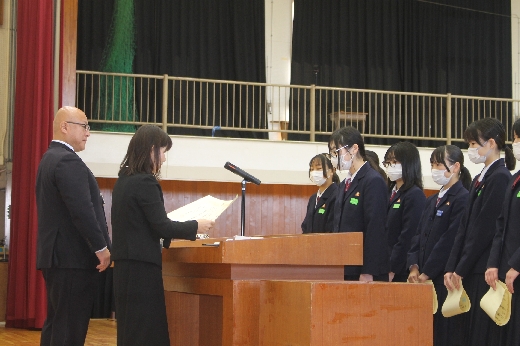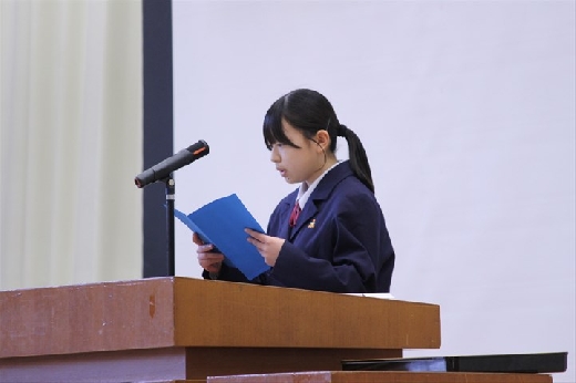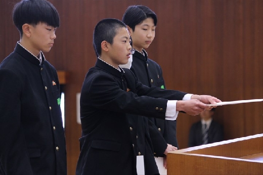 また学校長式辞では、鈴木校長からこの1年間言い続けてきた「自ら考え、判断し、実践する」ことへの振り返りと自ら成長のために課題を解決できるようになった岩中生を称賛する言葉が述べられました。