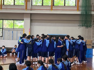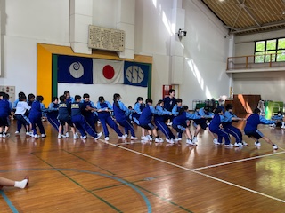 2日目、綱引き大会では、白熱の対戦が繰り広げられ、生徒自ら円陣を組み結束力の高まりが見られました。