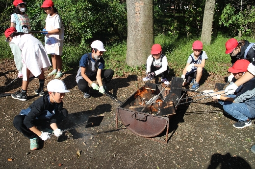 2日目は、焼き板作りと野外炊飯(カレー作り)。係の方の注意点をよく聞いて作業したので、素敵な焼き板とおいしいカレーができました。この2日間で普段できない経験をたくさんして自分たちで考えて行動することや、集団生活を通して友情を深めることができました。最後には、「まだ帰りたくない!」というほど楽しい2日間だったようです。