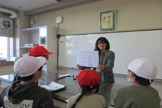 今日の昼休みは「たてわりはんビンゴ」です。先生たちが考えた3択クイズに答えてキーワードをもらい、ある言葉を完成させるというゲームです。グループごとに学校内の様々な場所にいる先生を探し、楽しくクイズに答えていました。
