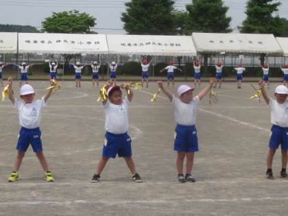 1,2年生のダンス「陽はまた昇から」,3~6年のダンス「鬼滅ダンス」です。1年生から6年生まで,2週間の練習で振付をしっかりと覚え,表現力もつきました。明日はいよいよ運動会本番です。明るく,元気に,心を一つに表現します。