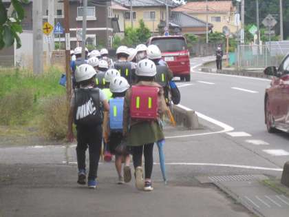 下校の際,次のような姿が見られました。元気なあいさつ,通学班で一列歩行,下級生の面倒を見る上級生…。地域の皆様、いつも子どもたちの登下校を見守っていただきありがとうございます。