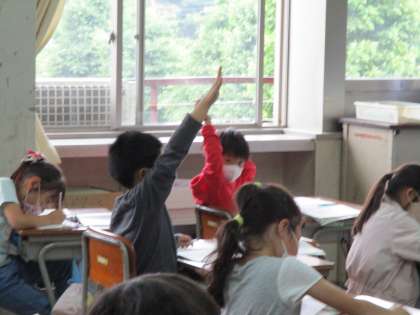 神小の児童は、集中して授業を受けています。2年生国語、4年生英語、6年生体育の授業の様子です。