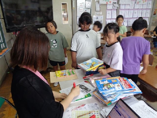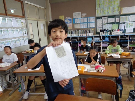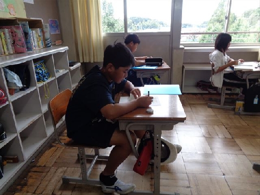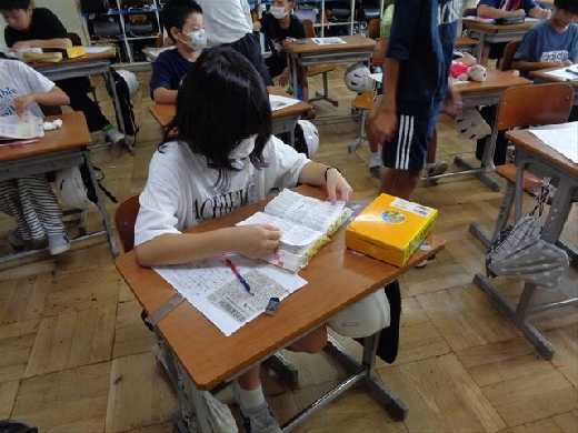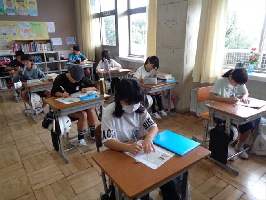 3・4年生は記事を読み、100字の作文作成に取り組みました。