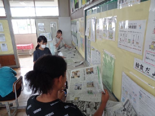 金曜日の朝は、全校で新聞学習(NIE)に取り組んでいます。