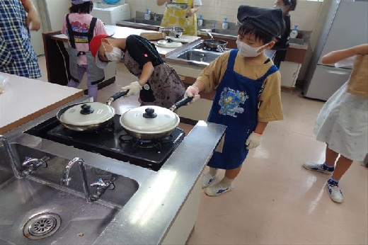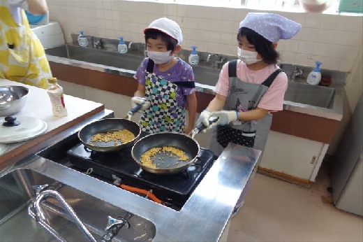 フライパンの中でポンポンとはじける様子に、子どもたちは大喜び。