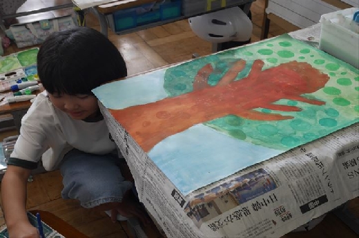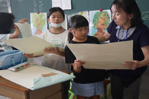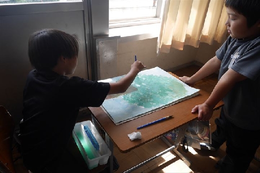 木の肌の質感や葉の色・形などにこだわりながら、思い思いの表現を楽しんでいます。