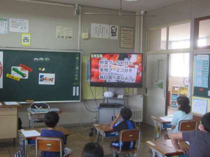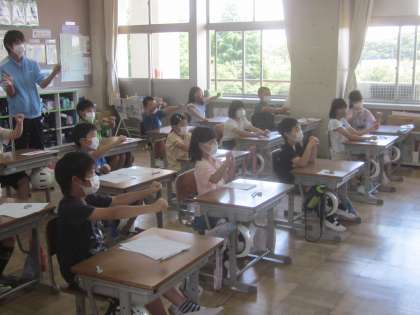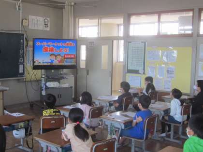 本日はカスミから2名の方を講師としてお招きし、スーパーマーケットの様子について学習しました。 3の1の様子です。