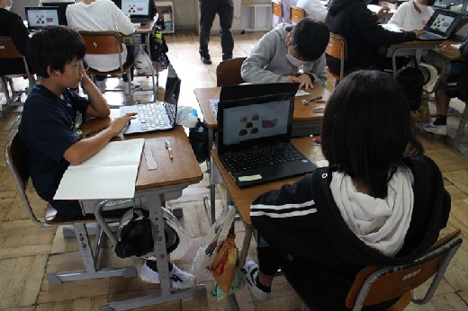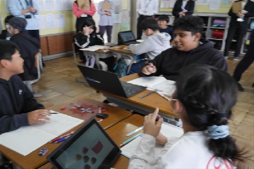 授業では、子どもたちがグループで話し合い、図や表を用いて自分の考えを説明したり、互いに質問し合ったりしながら、活発に学び合う姿が見られました。