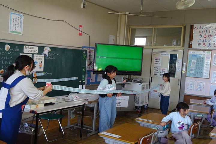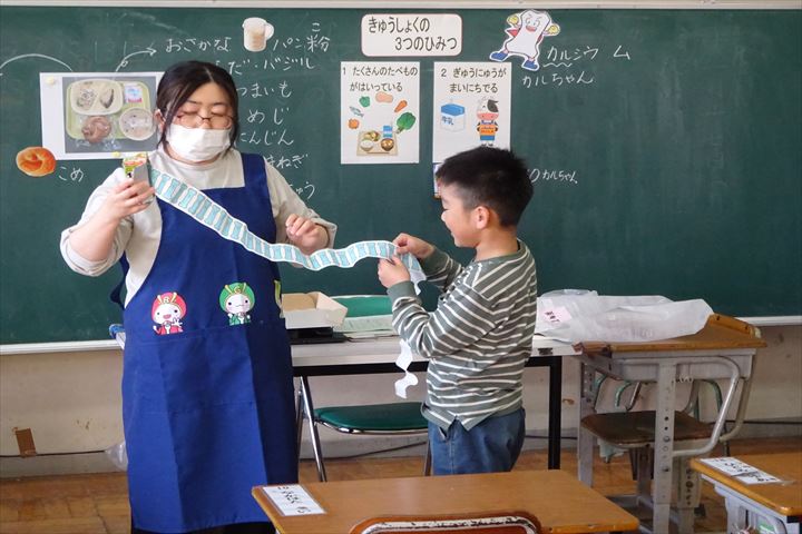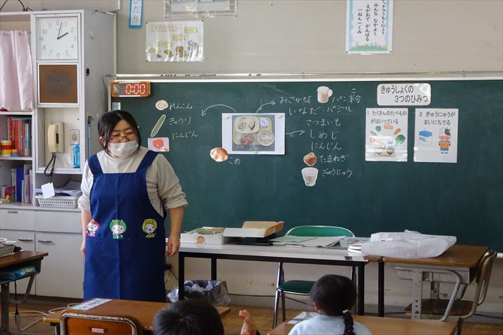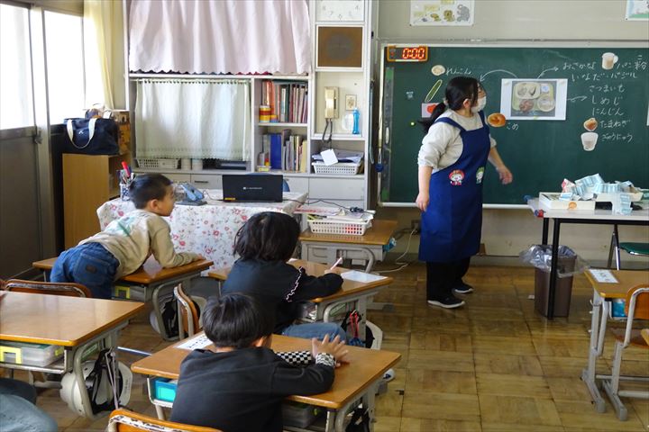 1年生の子どもたちは、先生の問いかけに元気よく手を挙げたり、一緒に活動を楽しんだりしながら、意欲的に学んでいました。授業の中で「なるほど!」と目を輝かせる姿がたくさん見られ、食に対する興味や関心がぐっと広がったようです。