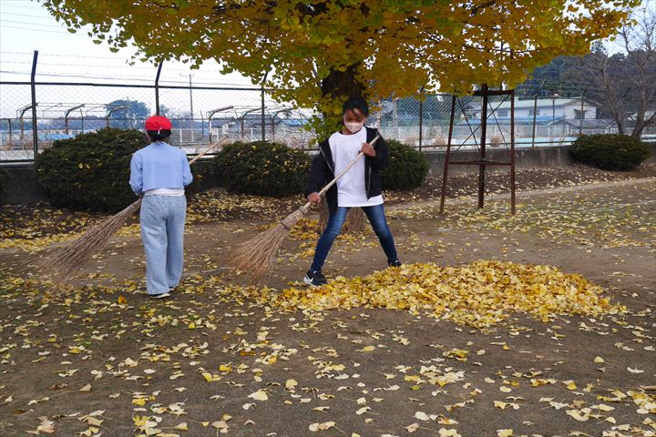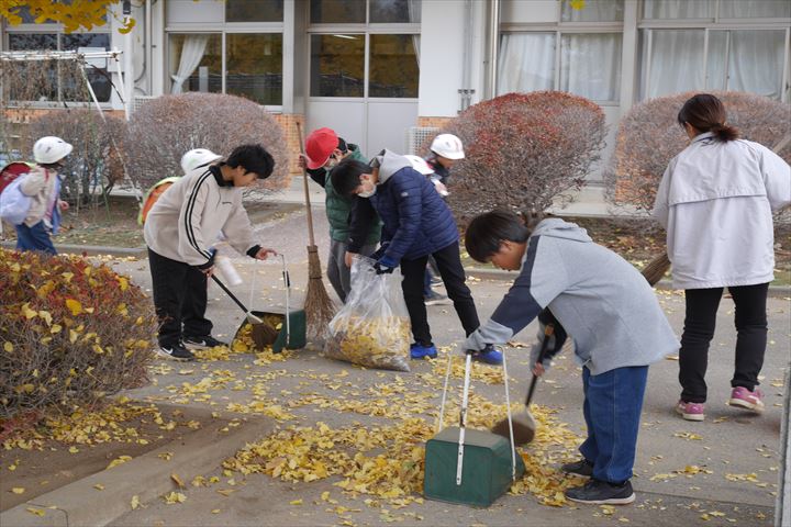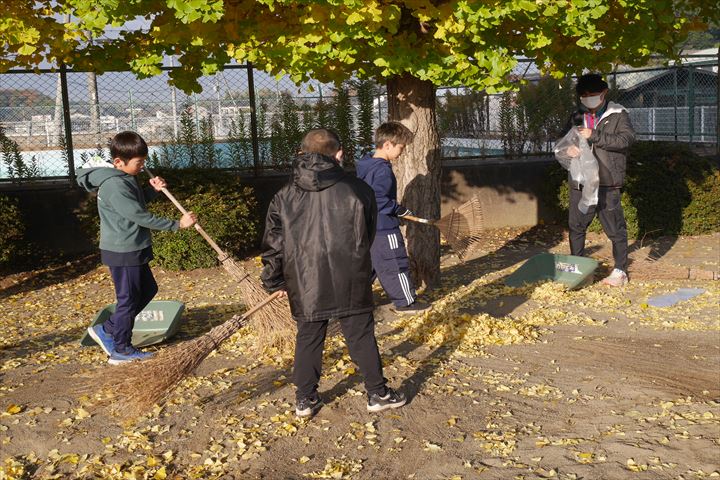 銀杏の落葉が進んでいるので、5・6年生が朝の時間を使って落ち葉掃きをしてくれています。自分から仕事を探し、意欲的に活動する姿がたくさん見られ、「さすが神小生!」と誇らしく思います。また、落ち葉を集めて処理したり、箒や塵取りを手分けして片付けたりするところまで、自分たちで考えて行動できているのでとても頼もしく感じました。日々の学校生活からも、子どもたちの成長を感じることができます。
