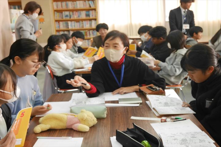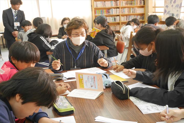 連句の会の皆さまをお招きし、6年生を対象に「連句教室」を行いました。活動では、五七五の発句から始まり、七七、五七五と続けて計六回の付け合いを行い、グループで一つの大きな詩(表合わせ六句)をつくり上げました。
