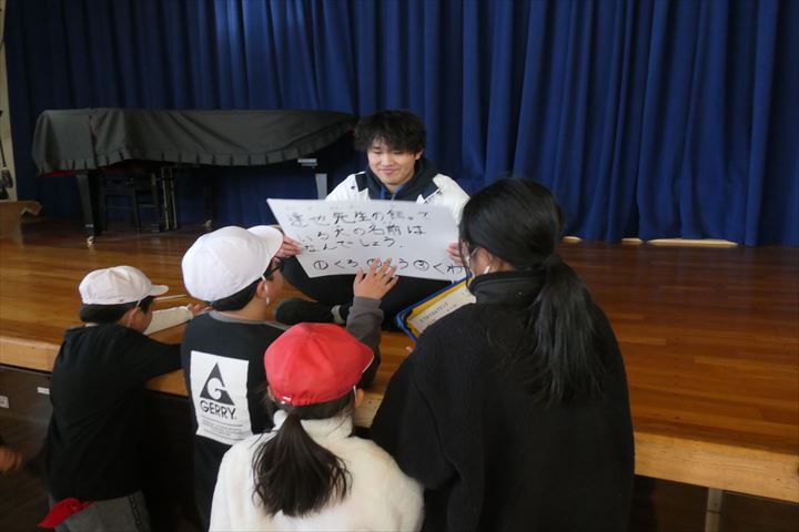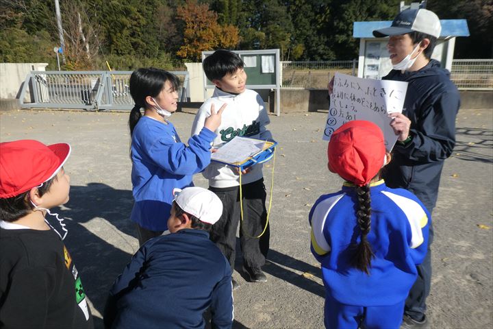 高学年の児童がリーダーシップを発揮し、下級生を引っ張りながら先生探しに大活躍。クイズの中では、先生たちの意外な一面が明らかになる場面もあり、笑顔があふれていました。