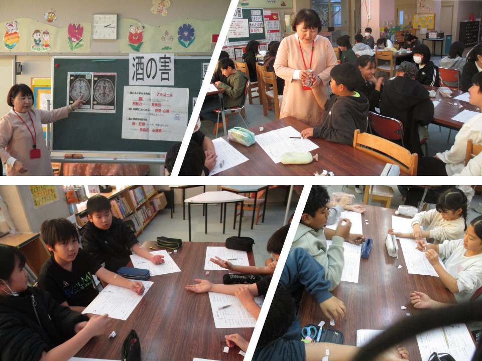 テーマは、思春期におけるお酒の影響です。成長期の体や心に及ぼす影響について学び、自分の健康を守ることの大切さを考えました。