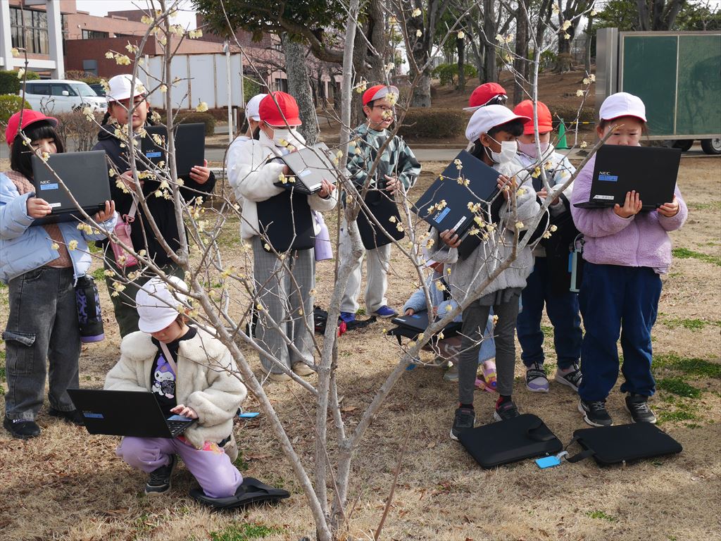 見つけた「春」は持ってきたPCで撮影。記録を持ち帰って、みんなで交流します。