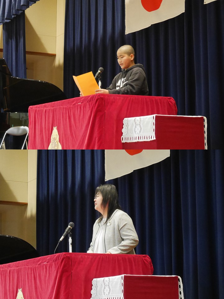 始業式では、児童代表による発表が行われました。「ピアノをがんばりたい」「算数をもっと得意にしたい」「失敗を恐れず自分から挑戦したい」など、自分の目標を堂々と発表し、新しい一年への意欲が感じられました。