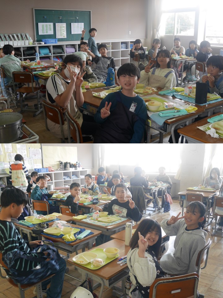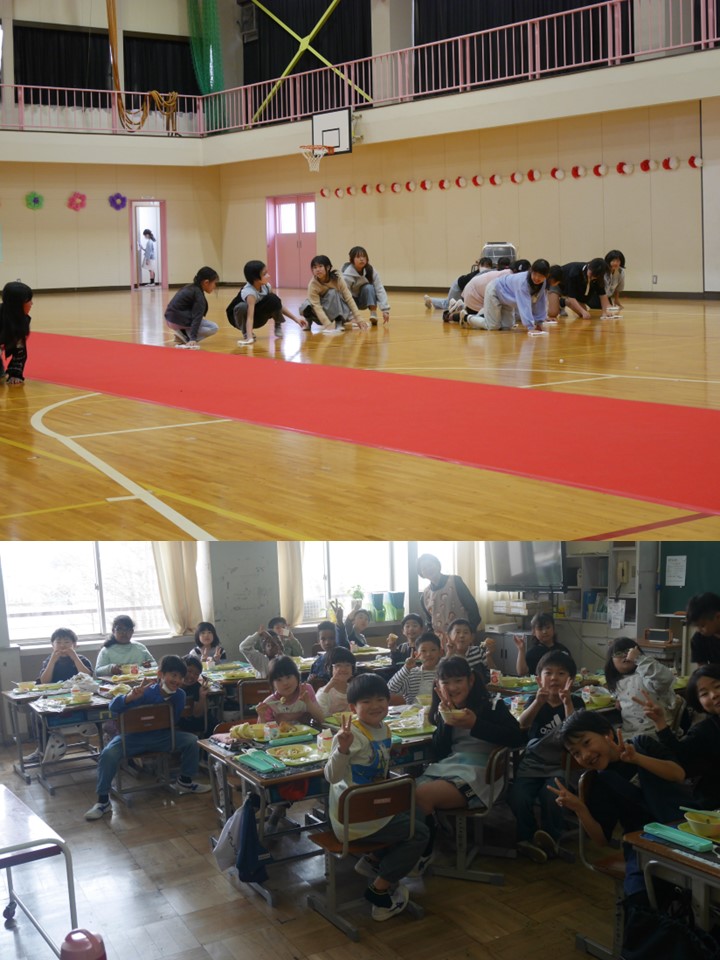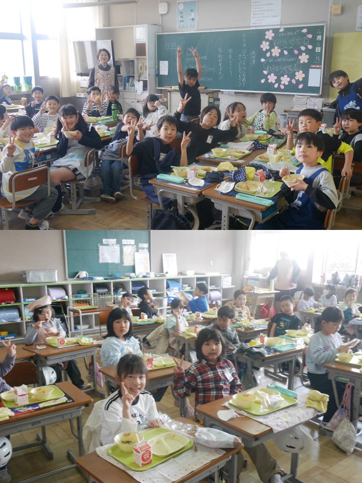 また、入学式の準備では、5・6年生が会場準備や片付けに自発的に取り組み、学校を支える高学年としての頼もしさが感じられました。給食の時間にも、それぞれが自分の役割をしっかりと果たし、笑顔あふれるひとときとなりました。