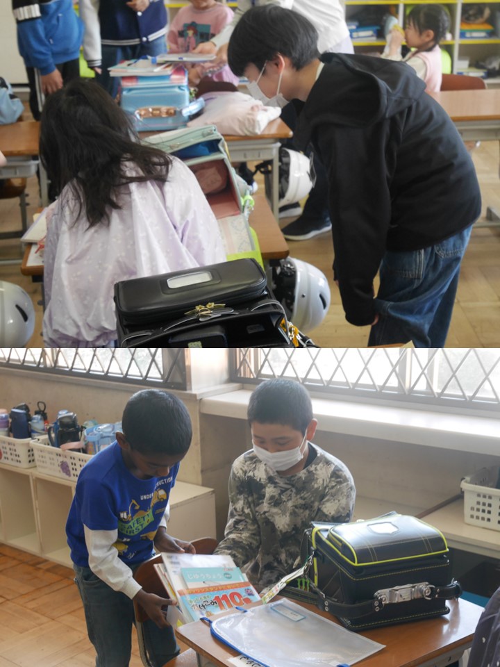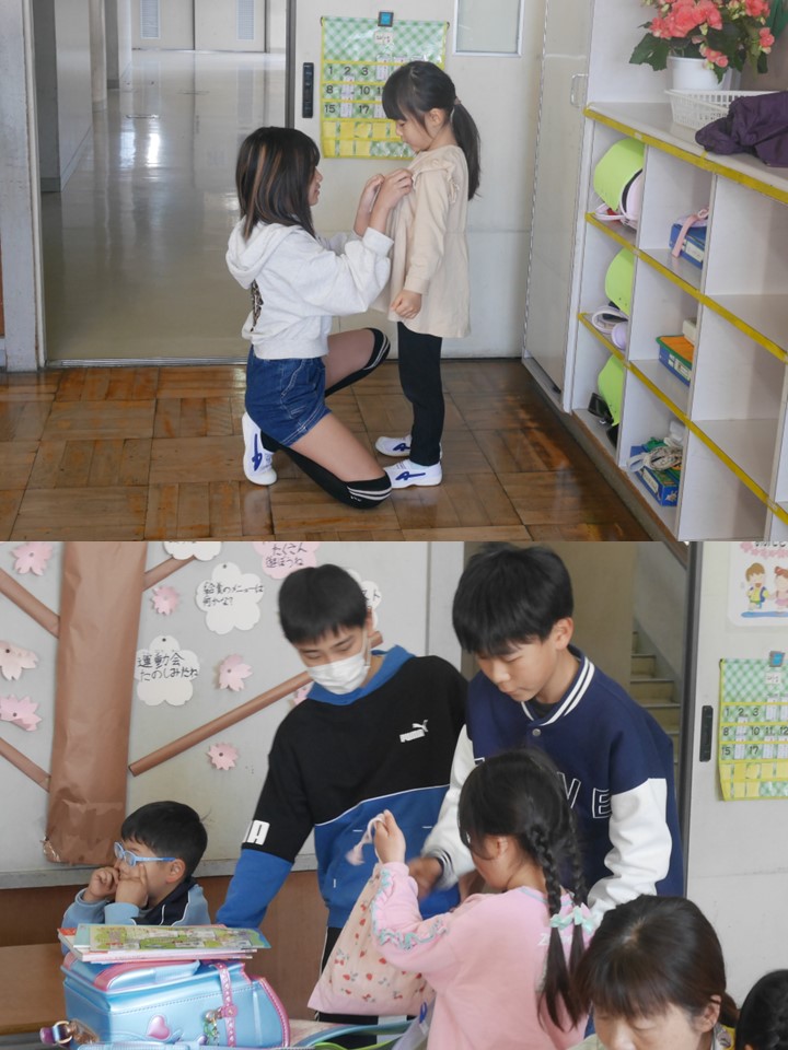 学校生活にまだ慣れていない1年生と一緒にランドセルを片づけたり朝の用意をしたりするのです。