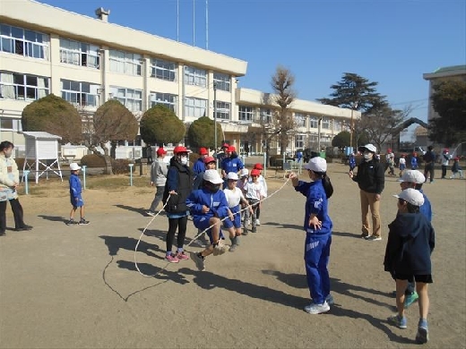 14日(水)昼休み、今年度最後となるくつっ子タイムが行われました。これまで、1年生から6年生を含む縦割り班で様々な活動を行ってきました。その中で、高学年の児童が1年生に8の字跳びを跳ぶタイミングを教えてきました。