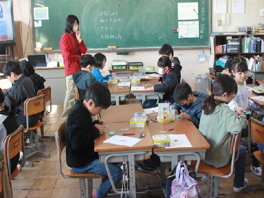 「磁石の性質」の学習として「磁石に付いた鉄は磁石になるのだろうか?」を調べました。磁石に付けた鉄くぎに砂鉄が引き寄せられる様子を確認したり、磁石にしばらく付けた鉄くぎに方位磁針が反応したりする様子を確認しました。そこから、磁石に引き付けられる物には、磁石に付けると、磁石になる物があることを見出しました。その不思議さに驚きながら楽しんで学習していました。