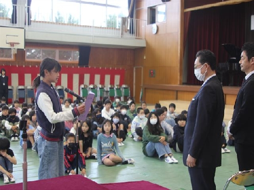 4月7日(月)は、新任式を行いました。人事異動により今年度赴任した教職員からのあいさつをしましたが、代表児童によるあたたかい歓迎の言葉もありました。その後は、第1学期始業式を行いました。代表児童は昨年度の振り返りをふまえ、今年度の新たな目標をしっかりと述べていました。校長式辞では昨年の目標である「あいさつ・そうじ・じかん」をさらに高め「自分から できる」を目標として掲げました。