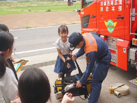 10月7日(火)は、3年生が坂東消防署猿島分署に校外学習に行ってきました。私たちのくらしを守るために、消防署の方たちが行っていることや工夫点などを学習しました。また、消防車や救急車の見学を行ったり、防火服を着せていただいたりもしました。今後の学習に生かしていきます。