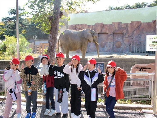11月12日(水)は、1年生が東武動物公園に遠足に行ってきました。晴天にも恵まれ、たくさんの動物を見ることができました。また、触れあい動物教室では、動物の特徴の説明を聞いたり、直接動物と触れ合ったりすることもできました。皆で協力して、仲よく楽しく活動することができました。