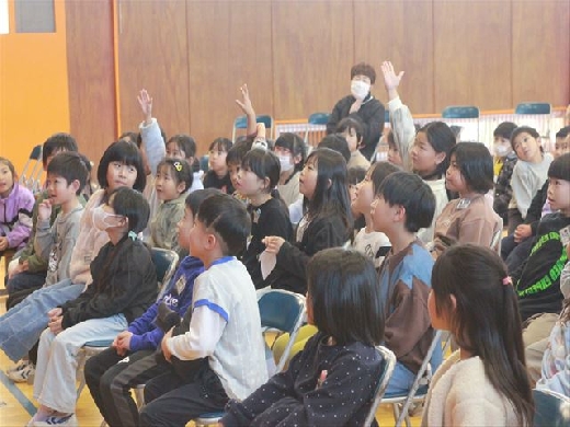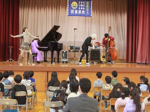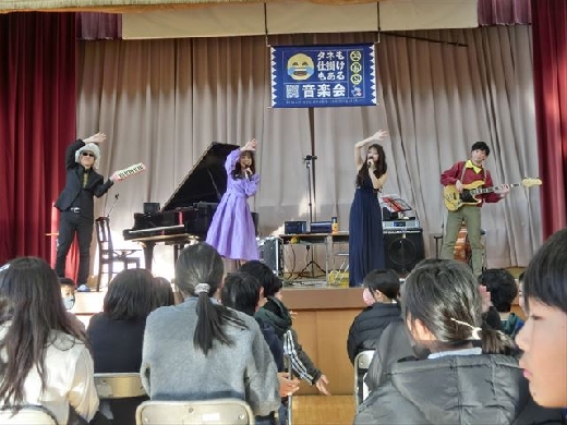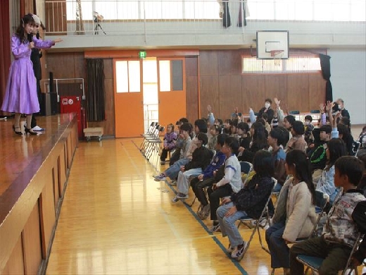 11月21日(金)は「タネも仕掛けもある音楽会」の皆様による芸術鑑賞会を実施しました。すばらしい歌や演奏に触れながら、とても楽しい時間を過ごすことができました。児童からは「楽器の音がきれいでした」「一生の思い出になりました」という感想がありました。また学校に「ひるの放送で流すCD」もプレゼントしていただきました。素晴らしい体験をさせていただき、ありがとうございました。