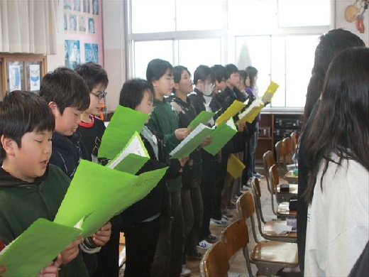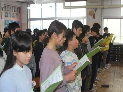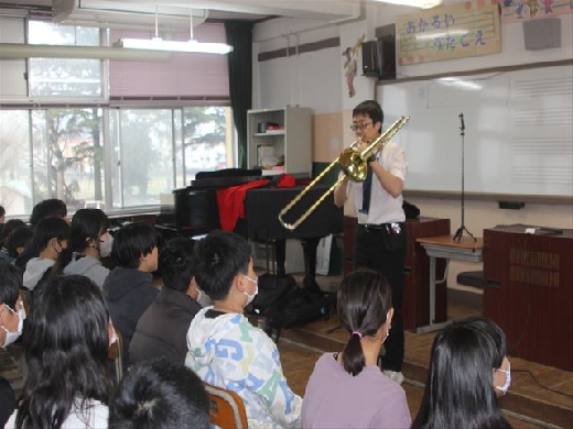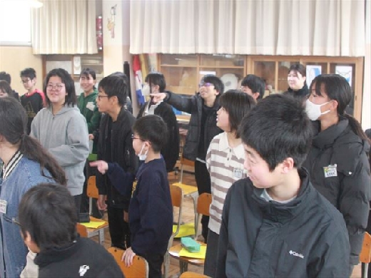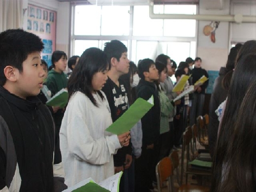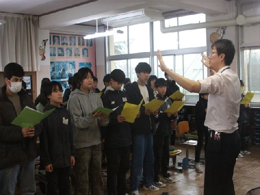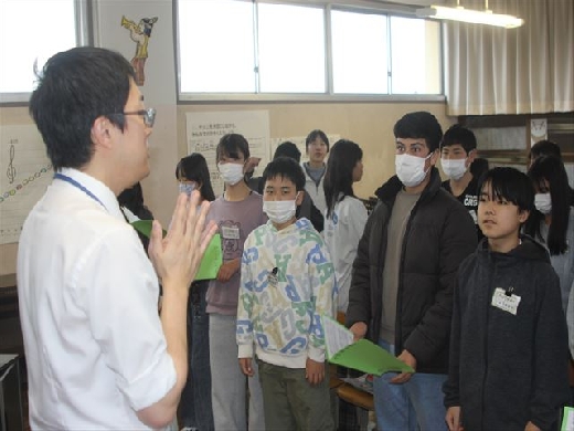 2月25日(水)は、猿島中学校の先生を講師としてお迎えし、出前授業を実施しました。「上手に歌うために自分たちの課題を見つけ改善法を考えよう」を課題としました。自分たちの合唱を振り返り、「高音が出ない」「伸ばしが足りない」等の課題を見つけ、その解決のために必要なスキルについて丁寧に教えていただきました。授業の最後にはとても大きな声で歌うことができるようになりました。
