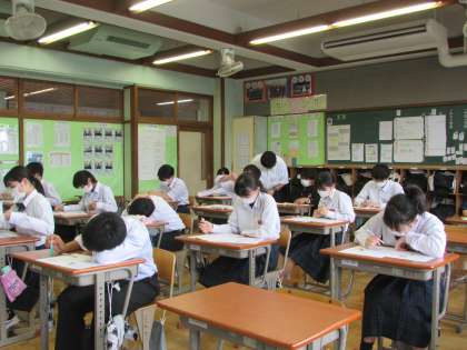 6月22日(水)は期末テストを実施しました。今までの学習の成果を振り返り、今後に活かしてほしいと思います。またテスト期間中を、七郷小、中川小と連携し「アウトメディア期間」としました。家庭学習に向かう時間の確保と同時に、メディアとのつきあい方も考えてほしいと願います。