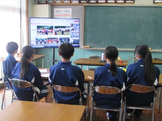 生徒会本部役員が、七郷小、中川小の代表児童と、オンラインによるリーダー会議を開催しました。