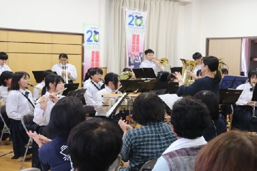 吹奏楽部が、七郷コミュニティセンターで行われた「オール七郷芸能大会」で演奏しました。