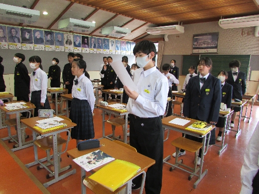 校歌の歌詞の意味を考えながら歌ったり、友達と協働して学習課題に取り組んだりと各クラスで頑張る姿が見られました。