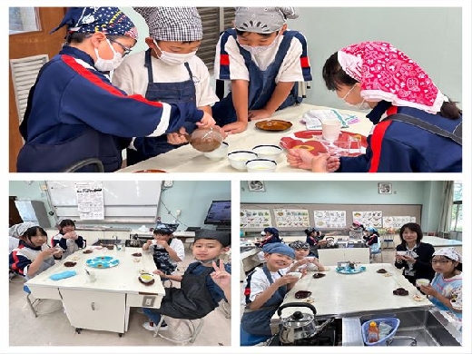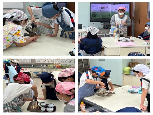 5年生になり、家庭科の学習が始まりました。今日は、「自分にできそうな家庭の仕事を見つけよう」という学習でお茶いれに挑戦しました。ガスの火や湯の取り扱いに十分注意しながら、どの班も上手にお茶をいれることができました。「なぜちょっとずつ注ぎますか?」と訊くと「濃さを揃えるためです」としっかり答えることもできました。担任の先生がお煎餅も準備してくれて、いれたてのお茶とお煎餅をみんなで美味しくいただきました。