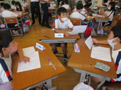 グループで、聞き、質問し合う活動を行いました。 自分の考えを堂々と発表するようすも立派でした。 講師の先生も3年生の素晴らしさに驚き、たくさん褒めてくださいました。