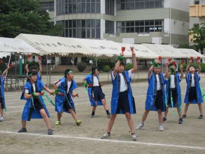 4年生。「よっちょれ長須2022」は、本来は高学年のダンス内容で高度でタフな踊りです。衣装も大きめ。それにもかかわらず、よく頑張り抜きました。