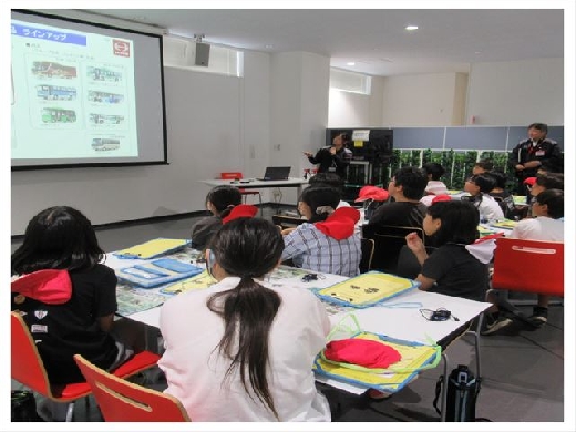 スクリーンで概要を説明いただいた後、オートメーション化された組み立ての様子を見学しました。部品ごとに分担された無駄のない作業の様子や、安全に作業するための配慮、環境保全やリサイクルに係る取組など、様々なことを学ぶことができました。