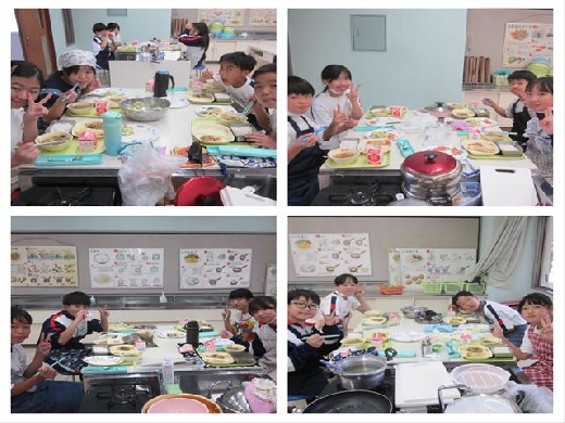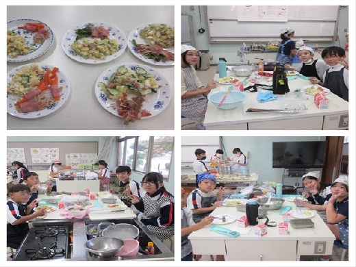 6年生の調理実習。出来立ての料理を職員室にもおすそ分けしてくれました。えのきやニンジンをベーコンで巻いて炒めたものやポテトサラダなど、程よい塩味がきいて、ご飯にもパンにも合いそうな美味しいおかずとなりました。作業も手際よくなってきたようです。ごちそうさまでした!