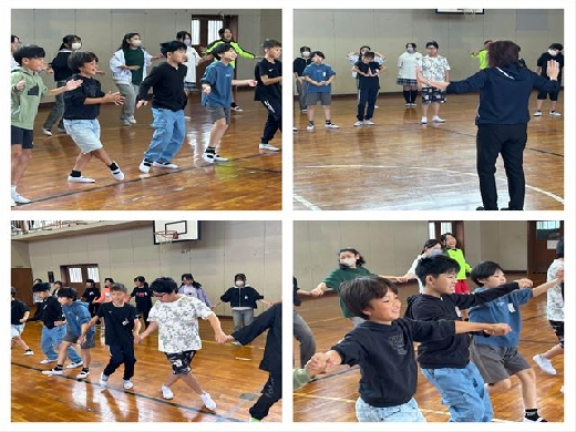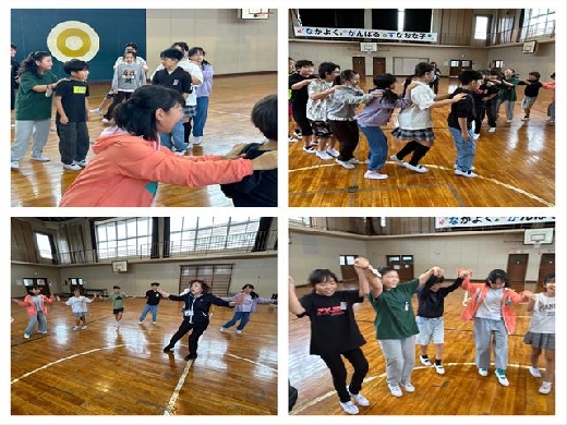宿泊学習がいよいよ来週に迫りました。今日は、朝から5年生がキャンプファイヤーの定番曲「マイムマイム」の練習を行いました。軽快なリズムに合わせてステップを踏み、みんなとても楽しそうでした。