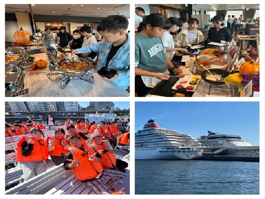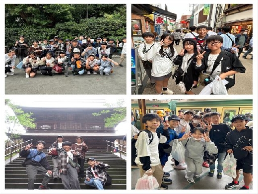 鎌倉では、歴史で学んだ数々の名所や小町通りなど、地図を片手に、徒歩や江ノ電で5時間の自由行動を有意義に実践できました。その後、横浜に移動し、異国情緒漂う中華街へ。中華料理をお腹いっぱい食べた後は、桜木町のホテルに宿泊。翌朝は快晴に恵まれました。豪華巨大客船のお客さんから手を振っていただきながら、「港町横浜」を堪能した横浜港クルーズは最高でした。カップヌードルミュージアムで即席ラーメン作りに挑戦した後、我が国開国の歴史と国内有数の国際都市両方を併せもつみなとみらいでの班別自由行動へ。6年生全員参加で素晴らしい修学旅行となりました。