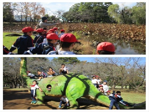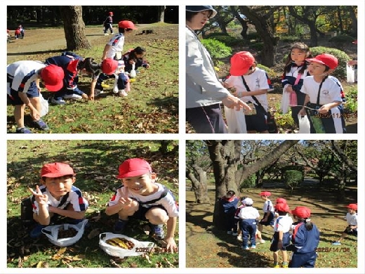 1年生が八坂公園に秋探しの探検に出かけました。どんぐりや紅葉した落ち葉など、たくさんの気付きや収集ができたようです。秋の公園でのレクリエーションも楽しかったね。